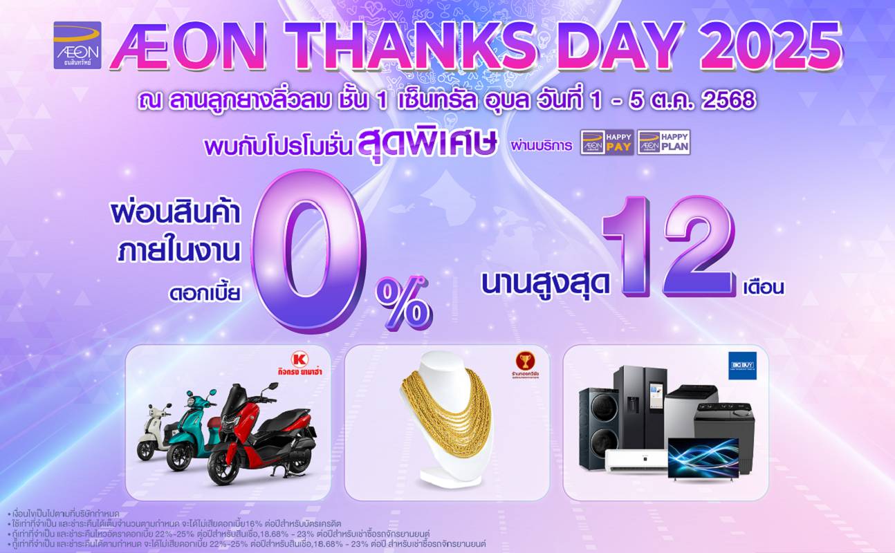 - รับส่วนลด 5% ในวัน AEON Day (วันที่ 10,20,30,วันเสาร์ และวันอาทิตย์) ตลอดระยะเวลารายการส่งเสริมการขาย