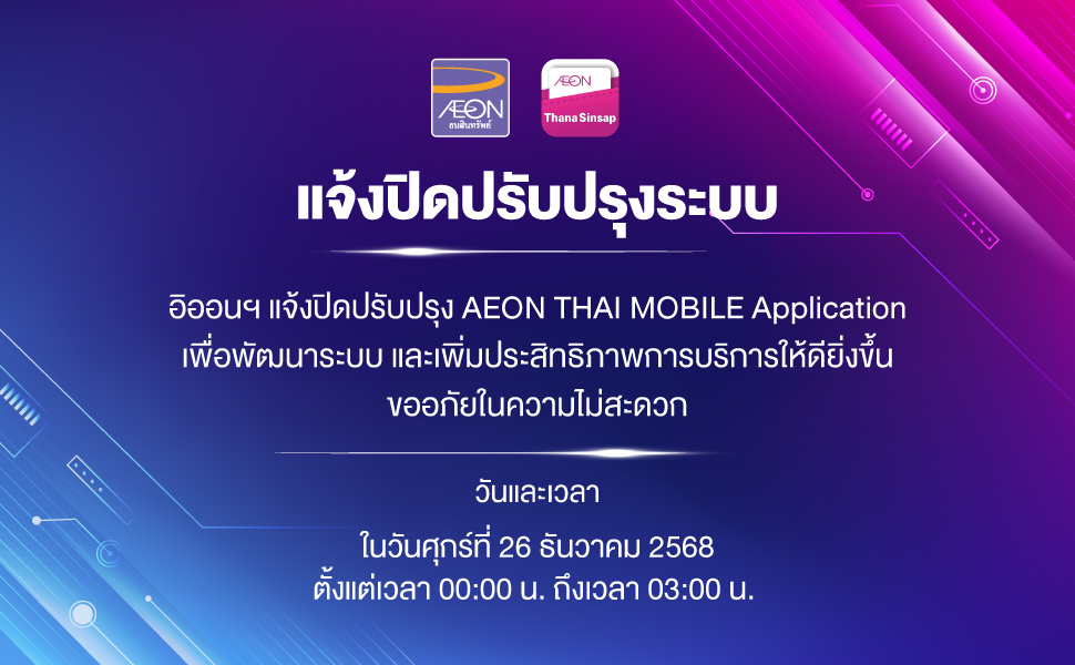 อิออนฯ แจ้งปิดปรับปรุง AEON THAI MOBILE Application