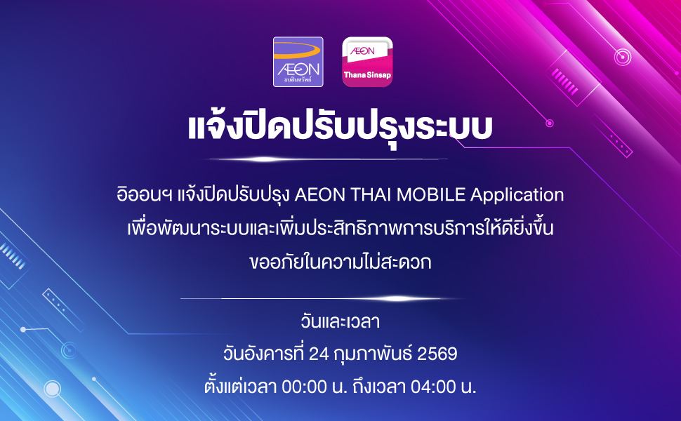 อิออนฯ แจ้งปิดปรับปรุง AEON THAI MOBILE Application