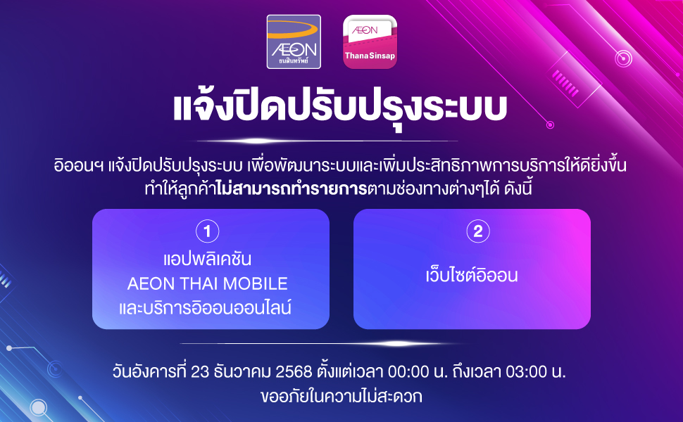อิออนฯ แจ้งปิดปรับปรุงระบบ เพื่อพัฒนาระบบและเพิ่มประสิทธิภาพการบริการให้ดียิ่งขึ้น