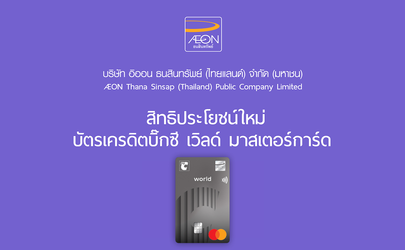 บริษัท อิออน ธนสินทรัพย์ (ไทยแลนด์) จำกัด (มหาชน) (“บริษัทฯ”) ขอขอบคุณที่ท่านไว้วางใจใช้บริการผลิตภัณฑ์ของบริษัทฯ ด้วยดีเสมอมา และในโอกาสนี้ บริษัทฯ ขอเรียนแจ้งให้ท่านทราบว่า ตั้งแต่วันที่ 1 พฤษภาคม 2565 เป็นต้นไป บริษัทฯ จะเปลี่ยนแปลงและยกเลิกสิทธิประโยชน์บางรายการสำหรับบัตรเครดิตบิ๊กซี เวิลด์ มาสเตอร์การ์ด ตามรายละเอียดดังนี้