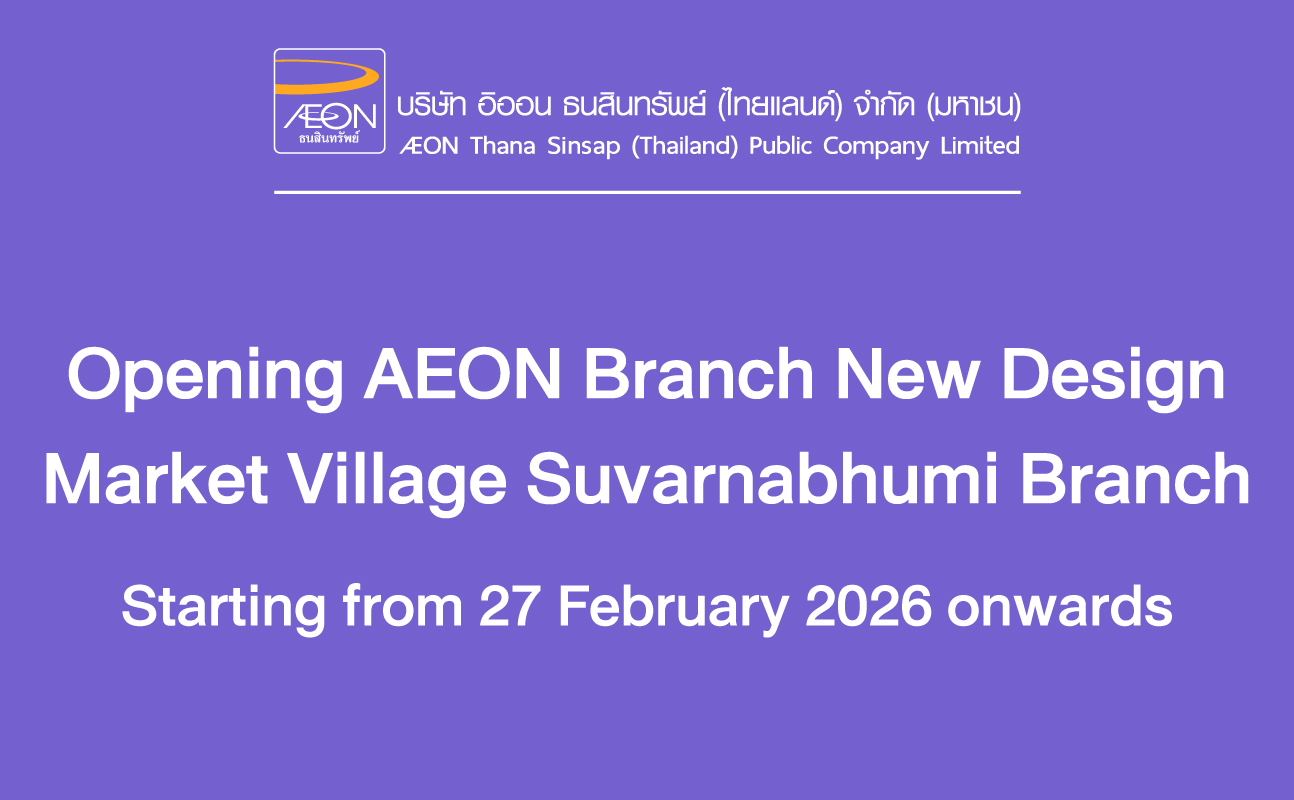 AEON remains committed to continuously improving our service quality to provide you with the best experience possible. For further information or inquiries, please contact our Customer Service team at Tel. 0-2665-0123, available daily from 09:00 to 18:00 hrs.