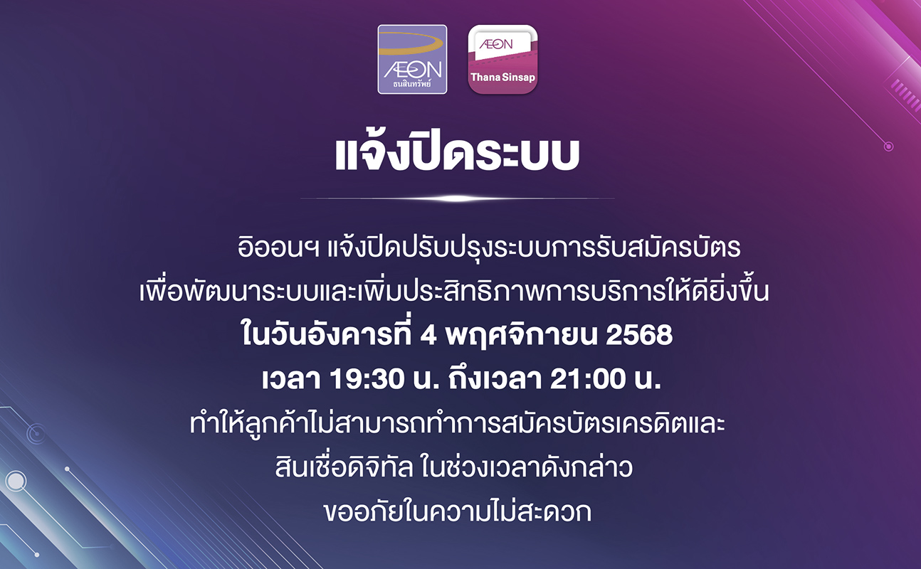อิออนฯ แจ้งปิดปรับปรุงระบบการรับสมัครบัตร เพื่อพัฒนาระบบและเพิ่มประสิทธิภาพการบริการให้ดียิ่งขึ้น