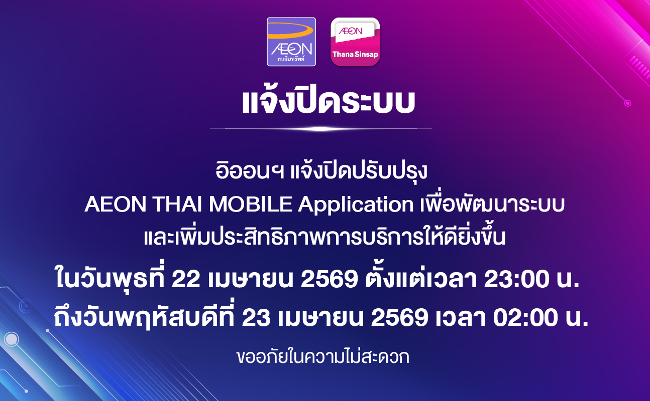 อิออนฯ แจ้งปิดปรับปรุง AEON THAI MOBILE Application