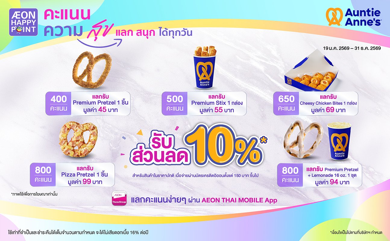 บัตรที่ร่วมรายการ : คะแนนสะสมที่เกิดจากการใช้จ่ายผ่านบัตรเครดิตอิออนทุกประเภท (ยกเว้น คะแนนสะสมที่เกิดจากการใช้จ่ายผ่านบัตรเครดิตอิออน รอยัล ออร์คิด พลัส และบัตรเครดิตบิ๊กซี) ผ่าน AEON Thai Mobile App.
