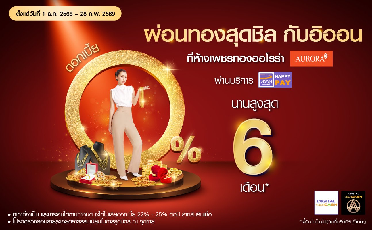 สถานที่ : ห้างเพชรทองออโรร่า ทุกสาขา ที่ให้บริการผ่อนชำระค่าสินค้าและบริการ ผ่านบริการ “อิออน แฮปปี้ เพย์”