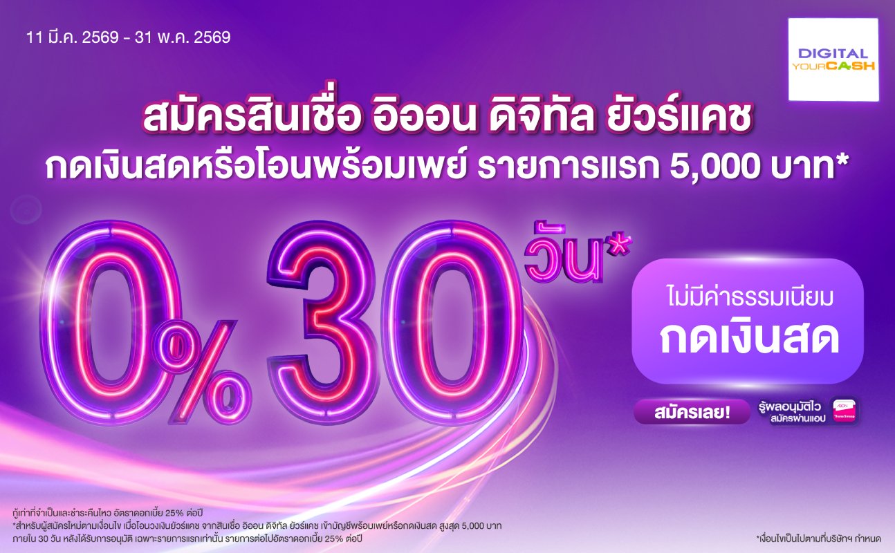 บัตรที่ร่วมรายการ : สินเชื่อดิจิทัล ยัวร์แคช (หมายเลขบัตรที่ขึ้นต้นด้วย 8588)
