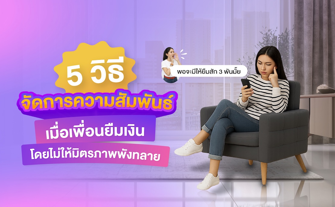 เมื่อเพื่อนขอยืมเงินแล้วคุณปฏิเสธไปอาจจะดูใจร้าย แต่ลองคิดให้ดีว่า ถ้าเงินก้อนนั้นทำให้ต้องเดือดร้อนในภายหลัง การปฏิเสธอาจเป็นทางเลือกที่ดีที่สุดเพื่อรักษาทั้งมิตรภาพและการเงินไว้ ยิ่งถ้าเป็นจำนวนเงินที่ก้อนใหญ่ขึ้นเกินกว่าคุณจะรับมือไหว ทางออกที่ดีที่สุดเพื่อไม่ต้องเจอปัญหาการยืมเงินคือแนะนำช่องทางแหล่งกู้เงินจากผู้ให้บริการทางการเงินในประเทศไทย ไม่ว่าจะเป็น